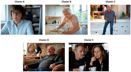 To facilitate the interpretation of the groups, Figure 2 provides a graphical representation of the clusters, generated using Grok 2 (xAI, San Fracisco, CA, USA).
