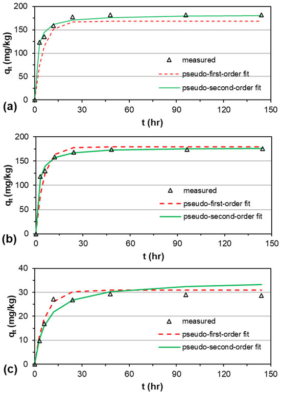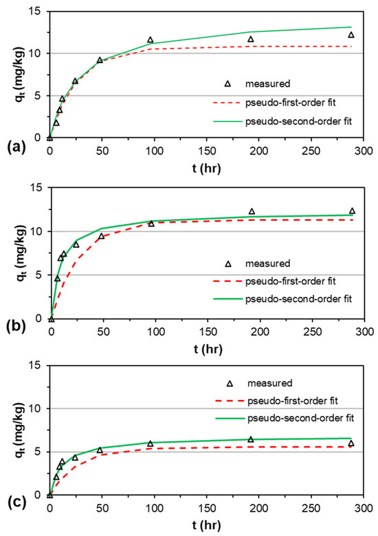 | Substrate | qe,m mg/kg | Pseudo-First-Order Model | Pseudo-Second-Order Model | ||||||||