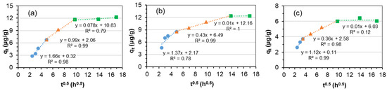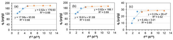 - Wang, J.; Guo, X. Rethinking of the intraparticle diffusion adsorption kinetics model: Interpretation, solving methods and applications. Chemosphere 2022, 309, 136732. [Google Scholar] [CrossRef] [PubMed]