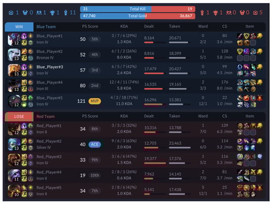 Figure 3, include player-level details such as kills, deaths, assists (KDA), damage dealt, damage taken, wards placed, creep score (CS), and items used. Additionally, team-level information, such as total kills and gold, provides a holistic summary of the game. This dataset served as the foundation for evaluating the performance of compacted JSON input files compared with raw JSON input files.