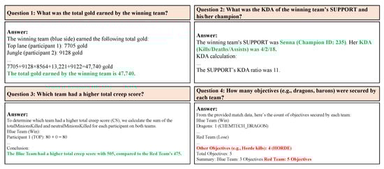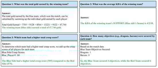 The qualitative evaluation further highlights the advantages of compacted JSON inputs for question-answering tasks. Using compacted JSON files, GPT-4o generated coherent and accurate responses across all question categories, including general match statistics, high-level overviews, and cross-match comparisons. In contrast, raw JSON inputs often led to incomplete or incorrect answers due to the token limitations of LLMs. These findings validate the LoL-MDC’s ability to transform complex match data into manageable and insightful formats, enabling LLMs to answer a wide range of analytical questions effectively. Our qualitative evaluation demonstrates that the compacted format provided by the LoL-MDC did more than remove redundant metadata. It improves the accuracy and coherence of LLM-generated responses compared with the baseline JSON files, indicating practical analytical advantages beyond data size reduction.