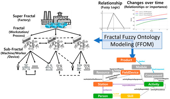The primary characteristic of FFOM is its synergistic combination of a fractal structural layer with a fuzzy semantic layer, supported by a graphical notation and an OWL transformation pathway. The fractal structural layer employs fractal pattern templates and principles of recursive instantiation to construct ontology structures that are inherently scalable, modular, and adaptable to change, with minimal redesign effort. This facilitates the systematic organization of complex, hierarchical information, often found in the manufacturing industry. Complementing this, the fuzzy semantic layer incorporates fuzzy logic to systematically manage vagueness, ambiguity, and imprecision. This is achieved through the explicit representation of fuzzy data, primarily using TFNs for attributes and relational strengths, alongside mechanisms for their defuzzification into crisp values, where needed, for practical application. FFOM also conceptually supports the use of linguistic variables for richer semantic expression and allows for the application of fuzzy operators and IF–THEN rules to enable nuanced reasoning under uncertainty, typically operationalized via external reasoning engines that constitute the FFOM–OWL model. The FFOM framework utilizes a set of graphical primitives, described in