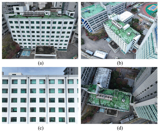 Collected Data Sample. (a) Target Building, (b) Circular Dataset, (c) Surface Dataset, (d) Aerial Dataset.