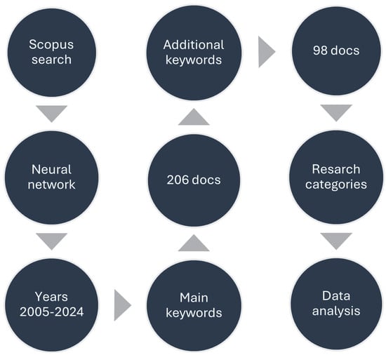 The approach described below was used to identify articles from the Scopus database relating to specific types of image processing using ANNs.
