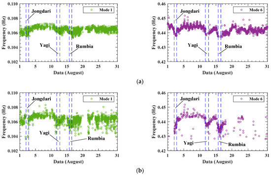 - Sun, M.M.; Li, Q.S.; Han, X.L. Investigation of long-term modal properties of a supertall building under environmental and operational variations. J. Build. Eng. 2022, 62, 105439. [Google Scholar] [CrossRef]