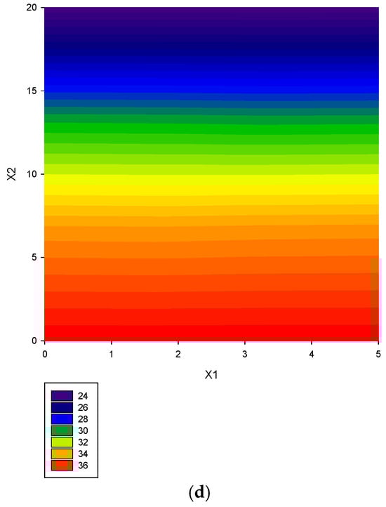 RSM’s special function is to test the experimental run for several factors with fewer samples. As the data are collected, the relationship between the system’s response and its influencing factors can be established by regression analysis. Then, the effect of factors on the response is graphed. Researchers can observe the relationship through the linear or curved distributions of these figures. This graphical function led to “response surface methodology” being widely used [,,].