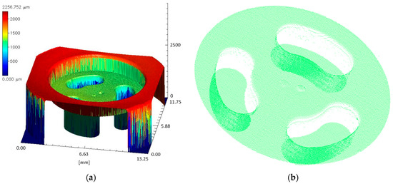 Figure 4. (a) An example of a surface profile and (b) a point cloud obtained for one of the components of the examined nozzle.