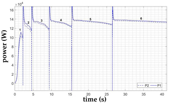 The mechanical efficiency of the transmission η can therefore be defined as the ratio of the powers at the gearbox output and input. That is the reason why the power sensor P1 was placed on the input shaft of the gearbox and the power sensor P2 was placed on the output shaft of the gearbox.