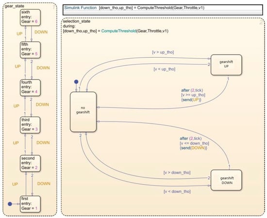 In the created simulation model of the vehicle, the previously created numerical simulation model of the planetary gearbox was applied. The simulation model of the ZF 6HP260 planetary gearbox used in the vehicle is described in detail in [52].