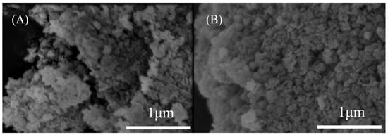 From the SEM images in Figure 3, it can be observed that the Mg-Al-Zn catalyst exhibits loosely distributed crystal particles with relatively uniform sizes. This is similar to the SEM characterization of Mg-Al-Zn composite oxides described in other published articles []. After the Mg-Al-Zn catalyst was used 10 times, the SEM characterization of the catalyst showed that there was no obvious change in its microstructure, and the particle size remained basically the same. This is consistent with the BET characterization in Table 2 and the analysis results of the XRD pattern in Figure 2, indicating that the change in activity of the Mg-Al-Zn catalyst from the first to the second use is independent of the microstructure of the solid.