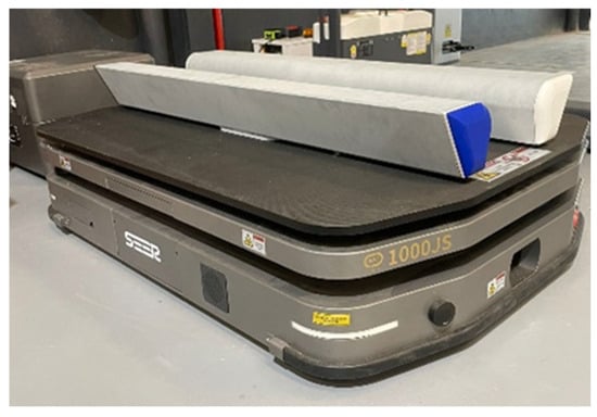 Finally, the last robot used in this case study was the AMB-1000JS from Seer (with the specifications listed in Table 3), as illustrated in Figure 5. It is an AMR designed for safe lifting operations and handling heavy loads in industrial environments []. This robot is equipped with two SICK nanoscan3 Core safety sensors, providing an omnidirectional 360° perception.
