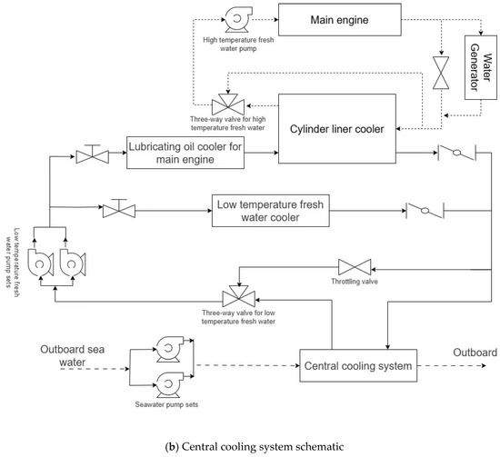 - Jeon, T.-Y.; Lee, C.-M.; Hur, J.-J. A study on the control solution of ship’s central fresh water-cooling system for efficient energy control based on merchant training ship. J. Mar. Sci. Eng. 2022, 10, 679. [Google Scholar] [CrossRef]