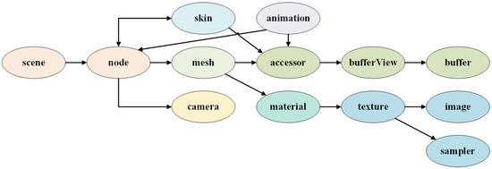 Today, most personal computers can render extensive, complex, realistic 3D scenes. In addition, having a dedicated graphics card has become almost mandatory. Hence, the creation of individual models is increasingly being replaced by modelling the entire virtual scene at once. To facilitate the transfer of complex and sophisticated 3D scenes, which may contain not only models but also information such as lighting, materials or camera settings, between 3D graphics applications, the glTF standard was developed. The format structure consists of a JavaScript object notation (JSON)-formatted text file and a binary file containing the data, called a buffer, where the former describes the contents of the latter. In the current glTF 2.0, the elements of a virtual scene form a hierarchical structure (