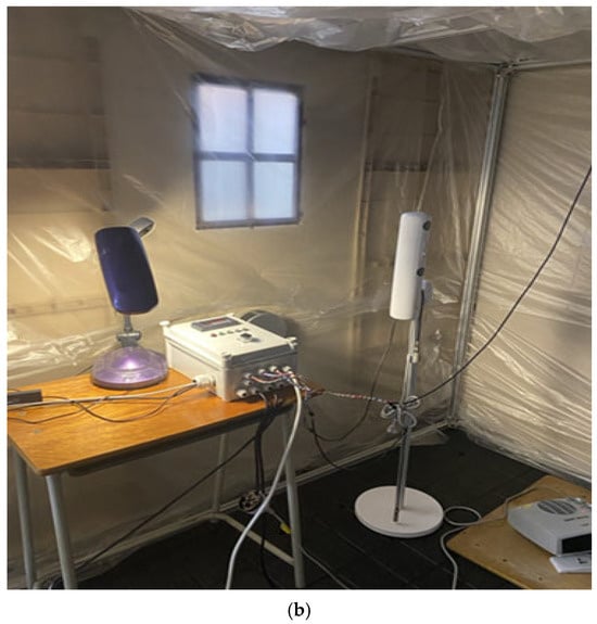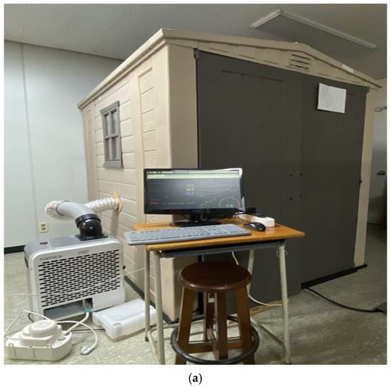 Figure 3a,b display the overall setup to carry out this work. Equipped with air conditioning units, monitoring sensors, temperature control devices, heaters, blowers, and a system for real-time monitoring and data analysis, this setup is used for AI-based climate and temperature control. As this system is mainly divided into two parts, including the main part and sub-part,