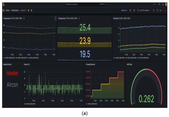 Figure 4a represents the sub-parts of the system in which the status of the system, such as power consumption, humidity level, and temperature, along with control values, are being monitored. System status and the control values of the main part are displayed in