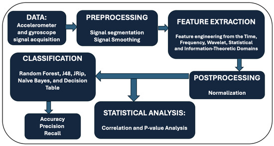 | Our Work | 84.90% | 0.848 | 0.928 | 0.849 | 0.033 | 0.850 | Random Forest | Phone | Number of Steps, Average Step Time, Average Cadence, Skewness, Kurtosis, Coefficient of Variation of Step Time, Harmonic Ratio, Average Step Length, Gait Velocity, Minimum and Maximum Difference, Standard Deviation, Root Mean Square, Entropy Rate, Regression Line for Local Maxima and Minima, Average Power, Ratio of Spectral Peak, Signal-to-Noise Ratio, Total Harmonic Distortion, Energy in Band 0.5 to 3 Hz, Windowed Energy in Band 0.5 to 3 Hz, Peak Frequency, Spectral Centroid, Bandwidth, Regression Line for Windowed Energy, Wavelet Bandwidth, Wavelet Entropy Rate, Zeroth-Lag Cross-Correlation Coefficient, Lampel–Ziv Complexity |