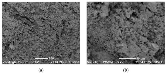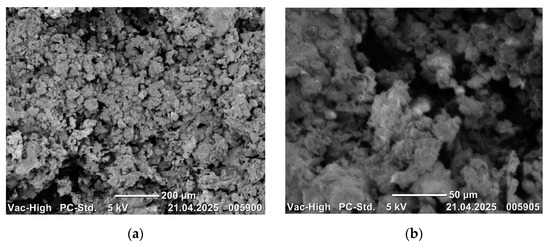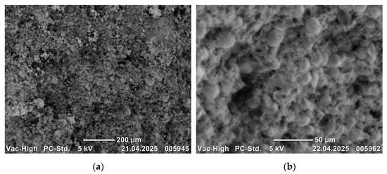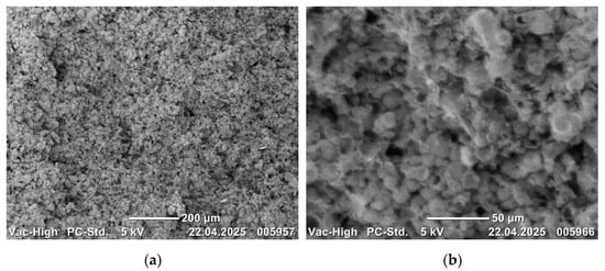 The microstructures of the sintered composites were examined using a scanning electron microscope (SEM) (JEOL NeoScope JCM-5000, Tokyo, Japan). Samples were analyzed to observe the distribution of B4C particles, the porosity, and the integrity of the phases. In order to ascertain the phase structure and crystal properties of B4C-reinforced Ti alloys, X-ray diffraction analysis (XRD) (Rigaku, Smartlab, Tokyo, Japan) was conducted in the 20–90° 2θ range.