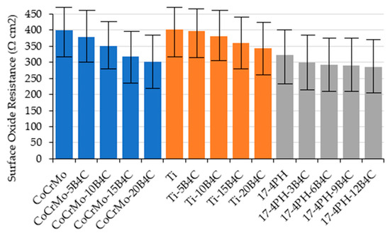 Surface oxide resistance (Ω cm2) from EIS of all samples.