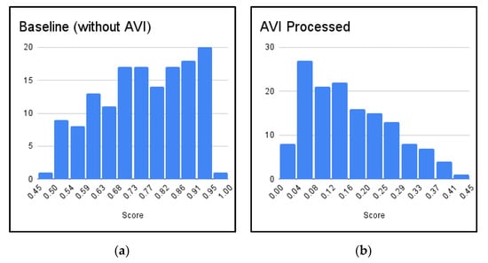 To assess the Output Validation Module’s (OVM) effectiveness in managing harmful content, 150 prompts from the RealToxicityPrompts dataset [54]—a standard benchmark for such evaluations—were used to elicit responses from the Grok-2-1212 LLM. This sample size was deemed appropriate for this PoC study (TOXICITY attribute, scale 0–1). The results, summarized in Table 5 and Figure 4, indicate a substantial reduction in output toxicity. The average toxicity score, calculated over all 150 prompts from the RealToxicityPrompts dataset [54], decreased from a baseline of ~0.72 to ~0.18 when processed via AVI, representing an estimated toxicity reduction of ~75%. The AVI system identified and consequently modified or blocked approximately ~65% of the initially generated responses due to detected toxicity exceeding policy thresholds. This demonstrates the OVM’s capability to significantly improve the safety profile of LLM-generated content.