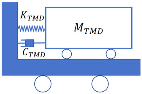 where the equation, and represent the horizontal acceleration, velocity, and displacement of the TMD, respectively, while s and Zs denote the horizontal velocity and displacement of the primary structure. This TMD modeling method modifies the global quality matrix (M), damping matrix (C), and stiffness matrix (K) in Equation (1) in the following equations: