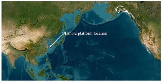 The offshore platform is located in a deep-water region off the coast of Zhejiang Province, China, as illustrated in Figure 8 (Map data in Figure 8 was obtained from Google Maps under academic fair use. Copyright 2024 Google LLC), where the marine environment is characterized by high-intensity typhoons and stratified seabed geology. Environmental parameters governing the platform design were derived from a combination of hindcast data and field measurements, with wave characteristics and current velocities for extreme return periods summarized in Table 1. The 100-year return period storm condition exhibits a significant wave height of 32.2 m paired with a spectral peak period of 18.9 s, while currents demonstrate marked asymmetry between flood and ebb phases.