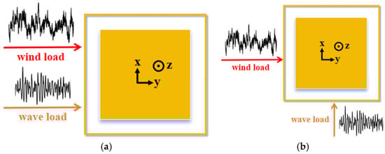 Two excitation patterns. (a) Aligned typhoon-wave loads; (b) Misaligned typhoon-wave loads.