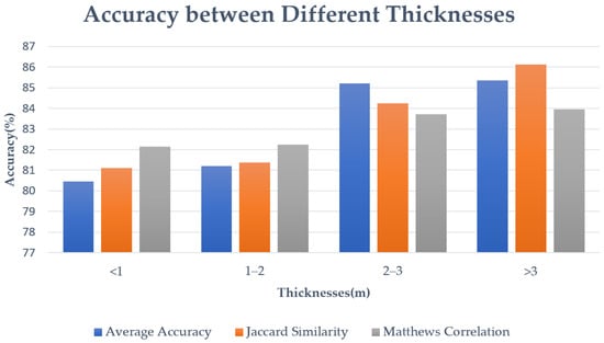 This study presents a novel approach for intelligent sedimentary facies identification by integrating multi-resolution sequence stratigraphy with deep learning techniques. The proposed framework effectively addresses the challenges of multi-scale geological feature extraction and small-sample-class imbalance through dynamic input adaptation and cross-modal feature fusion. Experimental results demonstrate that the hybrid model achieves an overall classification accuracy of 83%, with accuracy exceeding 80% for thin-bedded lithofacies (<1 m) and thick-bedded systems (>3 m) (Figure 16).