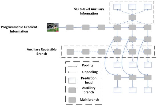 Programmable gradient information architecture diagram. This structure optimizes gradient flow and adjusts gradient utilization, improving training efficiency, stability, and object detection accuracy, especially in complex input environments.