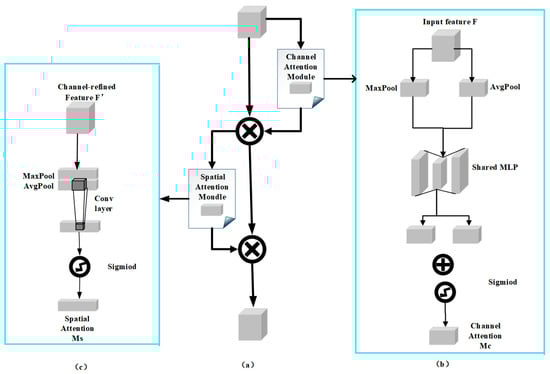 In the above expression, denotes the element-wise multiplication operation. F indicates the input feature representation at the beginning of the process, refers to the feature map generated after passing through the channel attention mechanism, and denotes the resulting feature map obtained following passing through the attention across spatial dimensions module. indicates the output produced by the attention mechanism for channel-wise features after processing the visual feature matrix F, while represents the output generated through the spatial attention mechanism after processing the visual feature matrix .