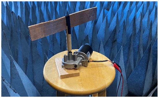 The initial setup and testing of the system are described in our previous work in []. The description and numbering of the data collections in this paper are given in Table 1. The remainder of the paper is organized as follows. Section 2 shows the results of the far field data collection. Section 3 shows the results from stationary target testing inside an anechoic chamber. Section 4 shows the results and detections of moving targets in a radar scene, and Section 5 shows the time–frequency analysis of an experimentally collected micro-Doppler generated by a rotating blade.