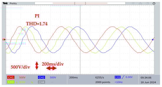 The proposed control method has demonstrated its ability to significantly improve the voltage quality for nonlinear loads, as shown in Figure 14. The analysis of the harmonic distortion rates, comparing PI, (i)PI, and the proposed control, shows values of 1.76%, 1.42% and 1.18%, respectively. These results highlight the remarkable effectiveness of the proposed method in reducing harmonic distortion.