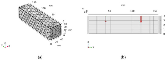 Numerical simulation diagram: (a) mesh generation; (b) stress application diagram.