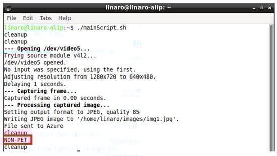 The authors have analyzed several ARM platforms, including Arduino Uno, M5Stack with ESP32, Raspberry Pi, and Asus Tinker Board. A comparative analysis conducted by the authors of this article, detailing the hardware and software advantages and limitations of these platforms, has been presented by Rosca [63]. Thus, Rosca et al. [63] have demonstrated the clear superiority of the Raspberry Pi and Tinker Board platforms in regard to IoT applications. Among these two platforms, Rosca et al. [63] highlighted the advantages of using the Asus Tinker Board, particularly in regard to scripting scenarios that do not require graphical user interfaces, thanks to its Linux-based operating system. For the current project, the Asus Tinker Board uses the TinkerOS, to support the execution of Bash scripts. This compatibility with Azure cloud services improves the system’s capabilities and facilitates its seamless integration with IoT frameworks. Using the Asus Tinker Board, with its Linux-based operating system, ensures that the proposed PET recycling system can process data and respond to real-time events, which are necessary for recycling operations.