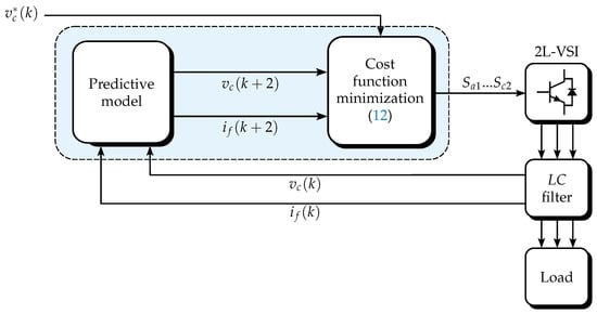 Model predictive control (MPC) is a control methodology that has gained significant popularity in the field of power electronic converters due to its simplicity, adaptability, and powerful features [27,28]. It effectively integrates constraints and handles non-linearities while providing a fast dynamic response by using a mathematical model for forecasting and a cost function for selecting optimal switching states [29].