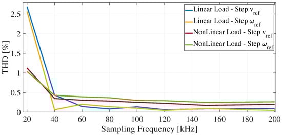 THD for the capacitor voltage in the implementation of predictive voltage control with different sampling frequencies.
