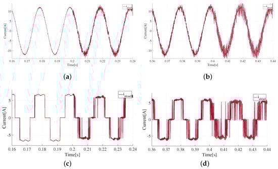 In addition, the waveforms obtained for the load current () for the cases of linear and non-linear loads are shown in Figure 8c and Figure 8d, respectively.