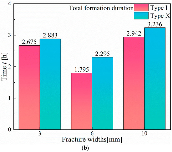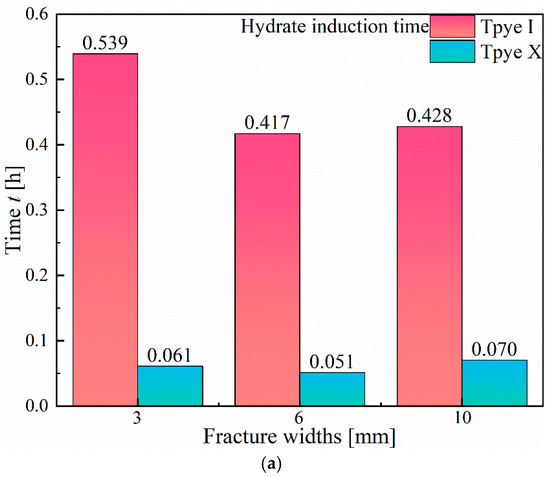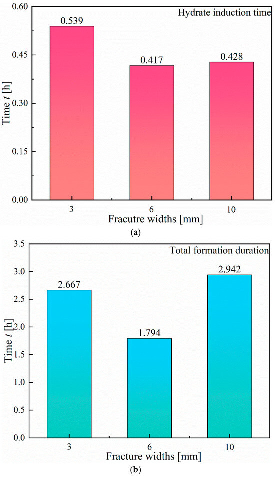 Type I fracture under different widths: (a) hydrate induction time; (b) total formation duration.