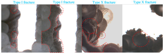 This section primarily modifies the specific surface area of fractures by adhering glass sand with varying particle sizes to the fracture walls. By analyzing the hydrate induction time, total formation duration, and gas consumption curves during hydrate formation, as depicted in Figure 12, it was observed that in Type I fractures, compared to smooth fractures, an increase in the specific surface area of the fractures leads to a decrease in both the hydrate induction time and total formation duration. Furthermore, as the specific surface area decreases, both the hydrate induction time and total formation duration further decrease when the particle size of the glass sand increases from 2.5 mm to 3.5 mm. Based on Figure 13, this may be because, in smooth fractures, hydrate growth primarily depends on the infiltration of water molecules, which gradually extend upward. However, the addition of glass sand creates more irregular structures on the fracture walls, increasing the storage sites for liquid and altering the distribution of surface energy. In areas with protrusions, surface energy is higher, making these sites active locations for heterogeneous nucleation, thus promoting the induction of hydrate nucleation. However, the complex geometric structure of the rough surface also limits the diffusion of gas molecules. As a result, it was observed that as the specific surface area decreases, both the induction time and the duration of hydrate formation begin to decrease as well.