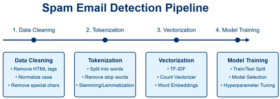 Isvani Frias et al. [19] for learning non-stationary data streams put forward the fast adaptive stacking of ensembles (FASE) approach. Their method from the real-time input has constant time and space complexity. It showed that their trials were more accurate in the prediction compared to other classical machine learning techniques. El-Kareem et al. [20] have tracked volunteer emails using email spam classification approaches such as Naive Bayes, SVM, decision trees, and meta-classification with an offered precision estimation of 95.67%. Madichetty et al. applied a stacked CNN for the discovery of the false and spam tweets [21]. In the study by Magdy [22], a deep learning model for email classification is presented with a focus on spam and phishing emails. These findings provide a higher level of accomplishment than previous works by using other benchmark datasets besides GDSR, various feature selection techniques, and an efficient model structure. Furthermore, it also discusses time complexity and offers a critical comparison with prior work. Email spam detection has become a focus of great interest for deep learning architectural designs. Ref. [3] proposed the RNN-GRU classification model for the selective spam detection mainly highlighting the evolution of spam detection techniques from simple filters to refined category classification such as the GRU schemes. The study concerns itself with just phishing emails, making it relevant to exert the accurate detection to secure the communication channels and personal emails.