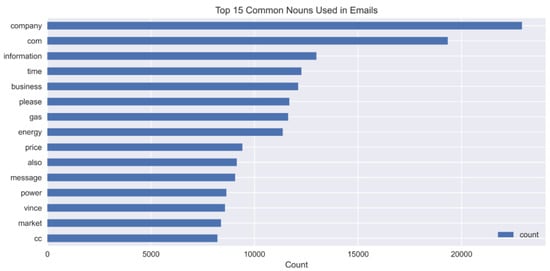 Top 15 common nouns used in emails.