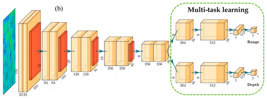 15], input signals are first transformed via Fast Fourier Transform (FFT) to compute normalized covariance matrices. These matrices undergo progressive spatial reduction through two convolutional layers and 2 × 2 max-pooling operations, preserving essential abstract features. The decoder branch subsequently processes distance and depth estimation tasks independently, with final predictions generated through fully connected layers. A key innovation lies in the integration of CBAM attention mechanisms and multi-task learning: CBAM selectively amplifies discriminative features through adaptive channel and spatial attention. Multi-task learning employs trainable weight parameters to harmonize optimization objectives across tasks.