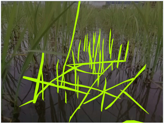 Research on weed detection has been conducted in recent years [13,14,15,16,17]. Most of these studies use UAVs to obtain data. Zou et al. developed a dataset based on aerial images captured from corn, wheat, and soybean fields and applied semantic segmentation to detect weeds, achieving an intersection over union (IoU) of 0.9291 [13]. Ma et al. constructed a dataset using aerial images of paddy fields and performed three-class semantic segmentation to classify weeds, rice plants, and the background, with a mean IoU (mIoU) of 0.618 [14]. The dataset used in their study is publicly available and can be used for further research. Building on this, Yang et al. performed training and inference using multiple NN models on the same dataset and achieved a higher mIoU of 0.781 with their proposed MSFCA-Net [17]. In addition to the paddy field dataset, their experiments included the soybean, sugar beet, and carrot datasets. The paddy field dataset yielded the lowest segmentation accuracy, suggesting that weed detection in paddy fields is particularly challenging. As described above, numerous studies have reported semantic segmentation for weed detection. However, most of these studies have utilized datasets based on aerial imagery. As discussed in Section 1, these approaches do not resolve the issue of weeds being hidden beneath rice plants and not being visible in the captured images in the first place. To address this limitation, we proposed an alternative imaging approach using an aquatic drone equipped with a forward-facing camera to achieve an mIoU of 0.676 [18].