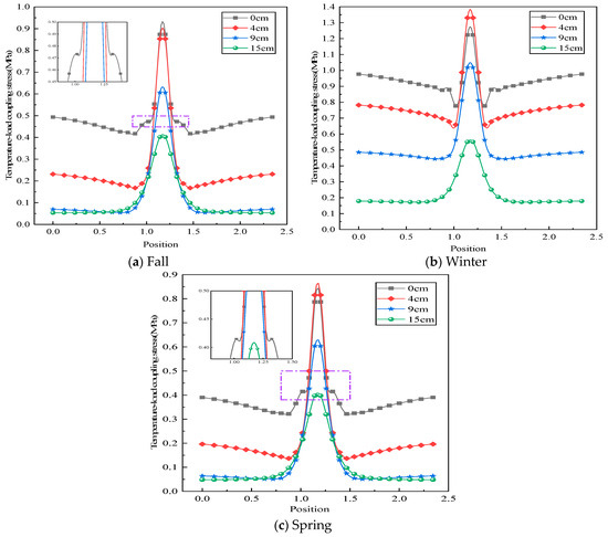 Evolution of single-axis load-temperature coupling stress under different seasons.