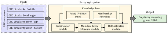 Architecture of fuzzy logic system for modeling relations between grey relational coefficients (GRC) of circular quality responses and grey–fuzzy reasoning grade (GFRG).