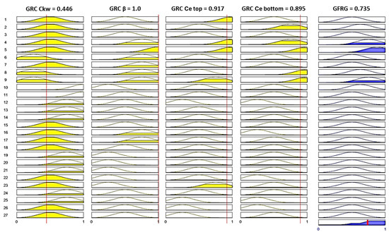The normalization results, as well as the calculated GRCs for all analyzed circular cut quality responses, and finally, the GRG values are presented in Table 6.