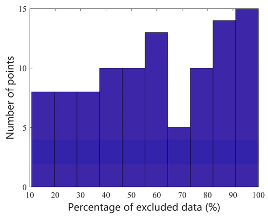 Statistical distribution of the percentage of data exclusion at each monitoring point under Case 3.