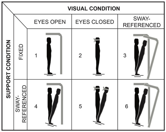 - Perucca, L.; Robecchi Majnardi, A.; Frau, S.; Scarano, S. Normative Data for the NeuroCom® Sensory Organization Test in Subjects Aged 80–89 Years. Front. Hum. Neurosci. 2021, 15, 761262. [Google Scholar] [CrossRef]