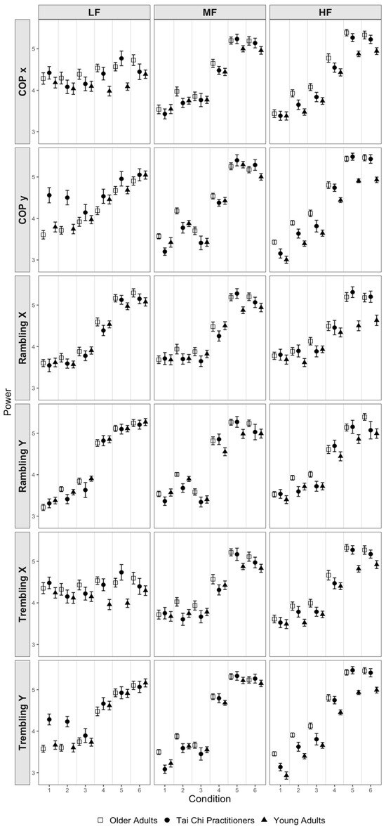 | Young Adult (N = 23) | Older Adult (N = 21) | Tai Chi Practitioner (N = 15) | |||||