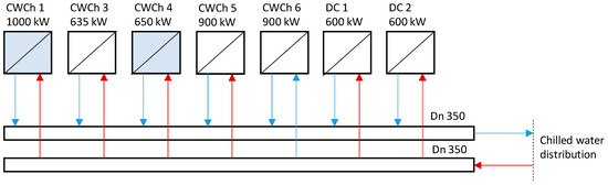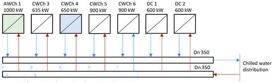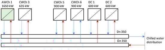 A schematic of the basic solution (Variant 0) for chilled water system retrofitting is shown in Figure 2.