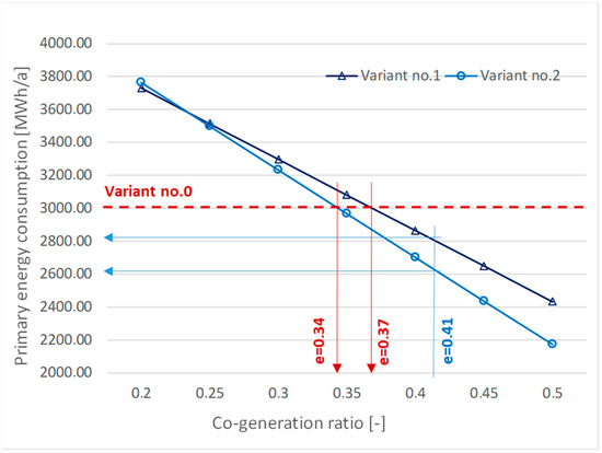 In the case of the basic variant (Variant 0), the consumption of primary energy was calculated as follows: